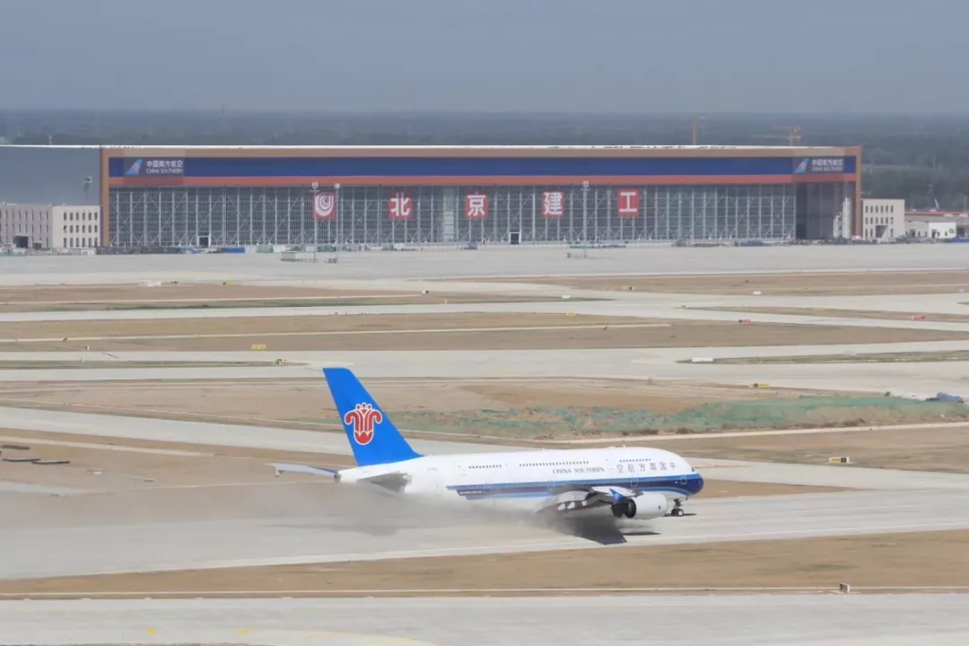 北京大興機場南航機庫,總面積3.9萬平米,鋼結(jié)構(gòu)屋架長404.5米,跨度為世界最大,是北京新機場南航基地內(nèi)體量最大的單體工程,是亞洲最大的飛機維修庫。機庫共設(shè)5個寬體機機位和3個窄體機機位,最多可同時容納包括2架空客A380、3架波音777在內(nèi)的12架飛機停放維修。南航機庫工程的設(shè)計、采購選材、施工建造全過程均體現(xiàn)出中國智慧、中國工藝,是100%的“中國建造”。