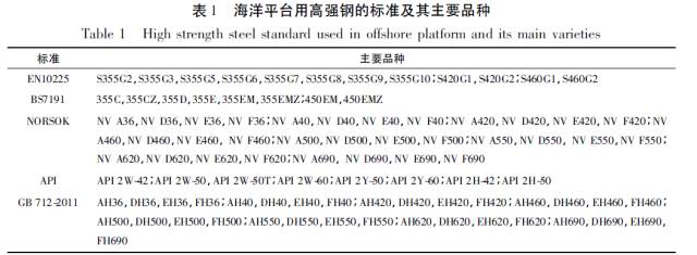 海洋平臺用鋼所遵循的通用標準主要為BS7191、EN10225、API及船用標準。我國于2011年也頒布了GB712-2011《船舶及海洋工程用結構鋼》。