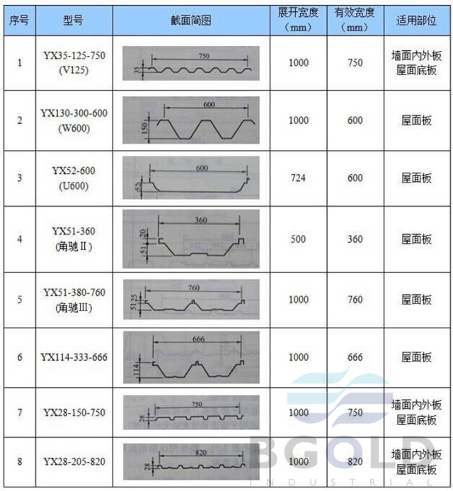 【寶鋼】彩鋼壓型板分類及板型圖集