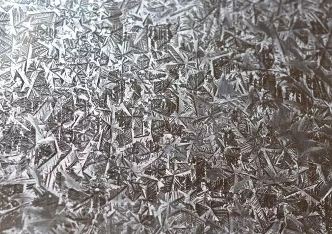 帶有美麗鋅花是傳統(tǒng)熱鍍鋅板的一個(gè)主要特征。鋅的結(jié)晶體最完整的形態(tài)近似于雪花或六角星形,因此通過(guò)熱鍍工藝帶鋼表面上冷凝獲得的鋅晶體最可能形成雪花或六角星形鋅花。