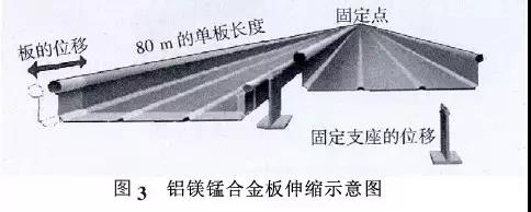 屋面板基材通常采用國際牌號(hào)AA3004 的鋁鎂錳合金壓型制作,合金狀態(tài)為H36/H46。其屈服強(qiáng)度≥190 MPa,抗拉強(qiáng)度在240~285 MPa,伸長率≥3%。收邊板基材采用國際牌號(hào)AA3004 的鋁鎂錳合金壓型制作,合金狀態(tài)為H34/H44,其屈服強(qiáng)度170MPa ,抗拉強(qiáng)度在220~265 MPa ,伸長率≥3%。