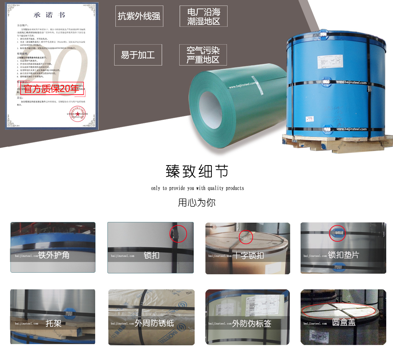 近年來,國內開始盛行以三氟氯乙烯和乙烯酯單體共聚的含氟樹酯,大量就用于建筑面積的外墻和金屬板,由于使用易水解的乙烯酯單體和氟的含量較PVDF低(30%左右),因此基耐候性與PVDF比較,有一定的差距。我公司所供應的寶鋼,燁輝,聯(lián)合等國內大型鋼廠生產的氟碳涂層,其涂層PVDF含量量不小于70 %(其它為丙稀酸樹酯)PVDF氟碳彩鋼板,提供20年質量保證書,保證在20年內涂層不脫落,不粉化,不龜裂,不退色。